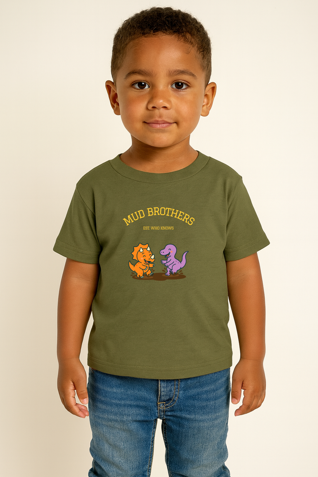 For toddlers who can’t resist puddles, dirt, and messy adventures, the “Mud Brothers” tee is their perfect match. There is something so precious about letting go, this T-Shirt featuring Max and Raz making a muddy splash, celebrates all the silly, carefree moments of childhood. Made from soft, durable cotton, it’s built for comfort while holding up to the busiest playdates. Great for birthdays, outdoor fun, or gifts for little Dinosaur lovers with big imaginations.